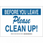 Available Options Brady 128220 7" x 10" Aluminum Before You Leave Please Clean Up! Sign Sale Price Price $16.37 List Price $18.19 You save $1.82 10% Free Shipping