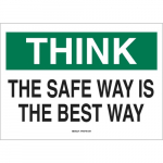 Available Options Brady 42916 7" x 10" Aluminum Think the Safe Way Is the Best Way Sign Sale Price Price $16.37 List Price $18.19 You save $1.82 10% Free Shipping