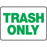 Available Options Accuform MHSK503XV 10" x 14" Adhesive Dura-Vinyl Sign: "Trash Only" Sale Price Price $16.20 List Price $18.00 You save $1.80 10% Free Shipping