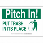 Available Options Accuform MHSK400XV 10" x 14" Adhesive Dura-Vinyl Sign: "Pitch in!" Sale Price Price $17.30 List Price $18.00 You save $0.70 3.9% Free Shipping