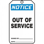 Available Options Accuform MDT801PTP 5-3/4" x 3-1/4" RP-Plastic Tag "Out of Service" Sale Price Price $50.80 List Price $51.84 You save $1.04 2% Free Shipping