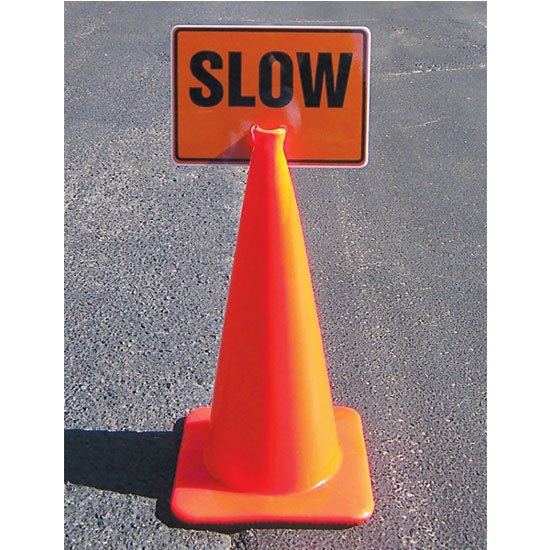 Simply slip sign into the top of any traffic cone. Rugged .060" plastic is printed with the same message on both sides with weather- and fade-resistant inks. Signs size 10" x 14".