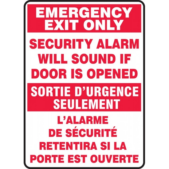 Accuform, FBMEXT566VP, 14" x 10" Plastic Bilingual Emergency Exit Only Safety Sign: "Security Alarm Will..."