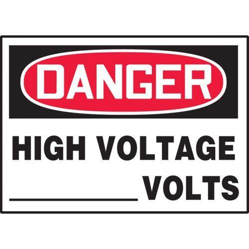 Accuform, LELC043XVE, 3-1/2" x 5" OSHA Danger Safety Label "High Voltage ___ Volts" Adhesive Dura Vinyl
