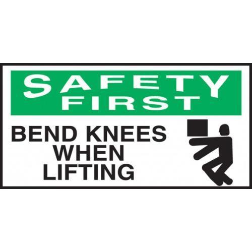 Accuform, LGNF934XVE, 1-1/2" x 3" OSHA Safety First Safety Label "Bend Knees When Lifting" Adhesive Dura Vinyl