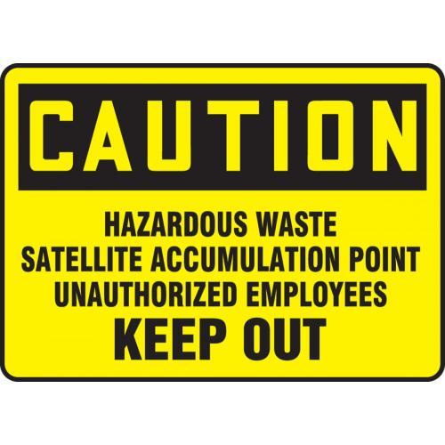 OSHA Sign: "Caution Hazardous Waste Satellite Accumulation Point Unauthorized Employees Keep Out"