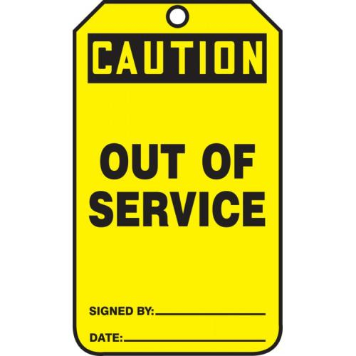 Accuform, MDT641PTP, 5-3/4" x 3-1/4" RP-Plastic Tag: "Caution Out of Service", Pack of 25 pcs