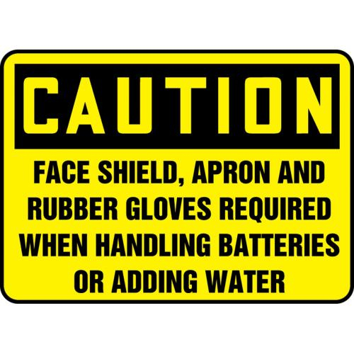 Sign size - 10" x 14". Require employees to wear the proper safety gear when handling batteries