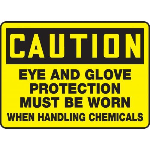 Accuform, MPPE940XT, 7" x 10" OSHA Caution Safety Sign "Eye And Glove Protection Must Be Worn When Handling Chemicals" Dura-Plastic