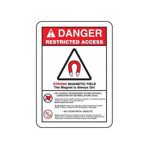 Accuform, MRAD140VS, 14" x 10" ANSI Danger Restricted Access Safety Sign "Strong Magnetic Field - The Magnet Is Always On" Adhesive Vinyl