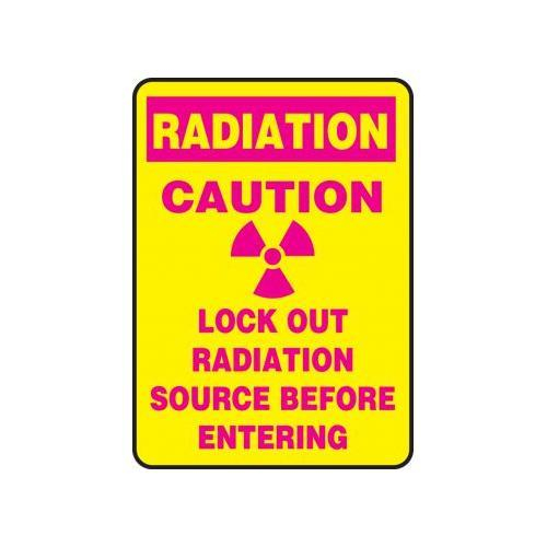 Accuform, MRAD911XT, 14" x 10" Radiation Safety Sign "Caution - Lock Out Radiation Source Before Entering" Dura-Plastic
