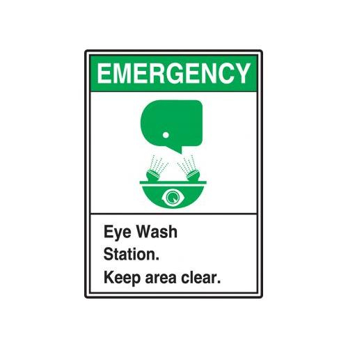 Accuform, MRSD905VA, 10" x 7" ANSI Safety Sign "Emergency Eye Wash Station - Keep Area Clear" Aluminum