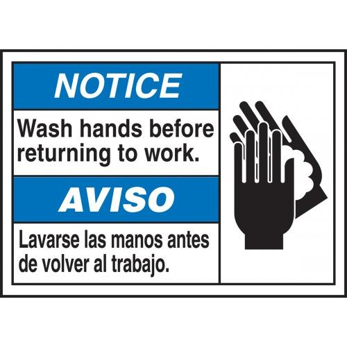 Accuform, MTAS816VP, 10" x 14" ANSI Notice Safety Sign "Wash Hands Before Returning to Work" Plastic