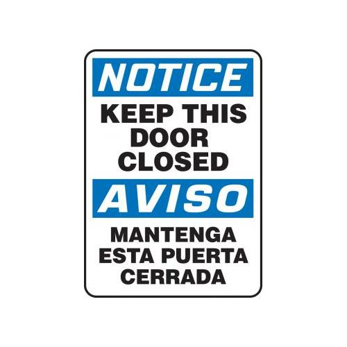 Accuform, SBMABR825XV, 14" x 10" Bilingual OSHA Notice Safety Sign "Keep This Door Closed" Adhesive Dura Vinyl