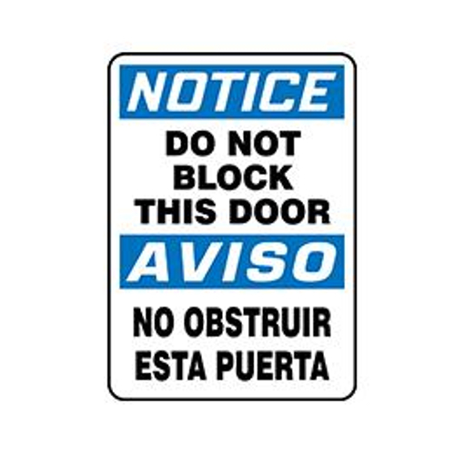 Accuform, SBMABR827XP, 14" x 10" Bilingual OSHA Notice Safety Sign "Do Not Block This Door" Accu-Shield