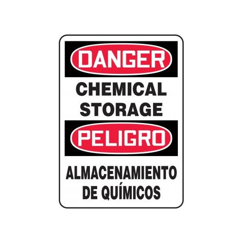 Accuform, SBMCHL192XV, 14" x 10" OSHA Danger Bilingual Safety Sign "Chemical Storage" Adhesive Dura Vinyl