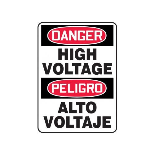 Accuform, SBMELC114XV, 14" x 10" OSHA Danger Bilingual Safety Sign "High Voltage" Adhesive Dura Vinyl