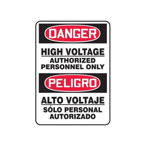Accuform, SBMELC187VA, 14" x 10" Bilingual OSHA Danger Safety Sign "High Voltage Authorized Personnel Only" Aluminum