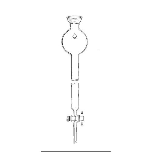 Chromatography column with integral reservoir for connecting 5872 flow control adapter. With 2mm bore, 1:5 taper solid PTFE stopcock plug at bottom. Available with or without Porosity B (70–100 micron) fritted disc sealed in. Order column, flow control adapter and clamp separately