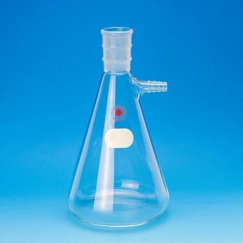 This heavy wall Erlenmeyer style flask has a 1/4-inch side hose barb and a reinforced standard taper 24/40 top joint. Used with a 3/8-inch I.D. tubing, size D. Fabricated from borosilicate glass.