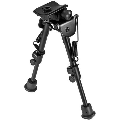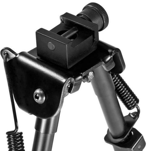 A quick deploying bipod, the legs are spring loaded for tension control so they can be retracted quickly. Bipod legs feature a posi-lock wheel and quick retract button. The bipod legs have a minimum height of 8" and maximum height of 12".