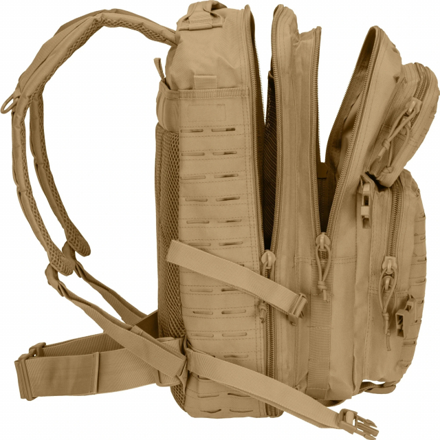 The Loaded Gear GX-700 Large Tactical Backpack with MOLLE is the perfect pack for transporting electronics, tools, tactical gear, and other accessories- whether you're a civilian or out in the field. The GX-700 features two main storage compartments, and it contains mesh sleeves for laptops, other electronics, and other medium & small items. The GX-700 Large Tactical Backpack with MOLLE features padded ergonomic shoulder straps and a padded back that allows for ventilation. The two smaller compartments feature an integrated MOLLE system, which allows the user to attach additional modular units and pouches.