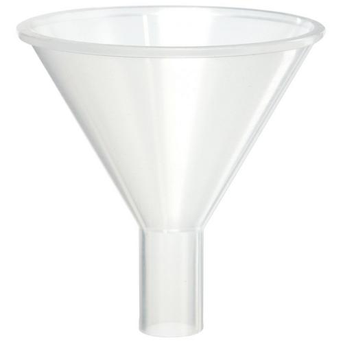 Polypropylene funnel is chemical resistant and Steam autoclavable at 121° C (250° F). Parallel stem walls keep powder flowing by reducing the bridging within funnel.