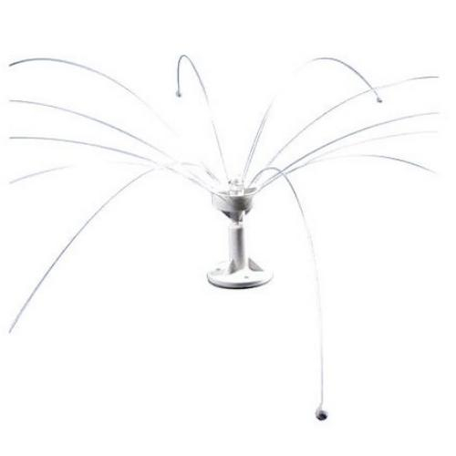 Thin, stainless steel rods constantly move to interfere with birds ft wings when they attempt to land. Design is unobtrusive and practically invisible from a distance.