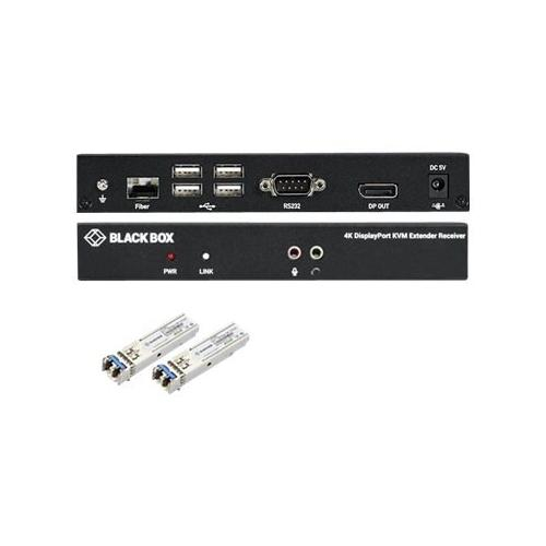 Black Box, KVXLCDPF-100-SFPBUN1, KVM Extender Over Fiber, 4K, Single-Head, DisplayPort, USB 2.0 Hub, Serial, Audio, Local Video with 2 SFPs, 1250-Mbps - LC, MM 850nm, 550m