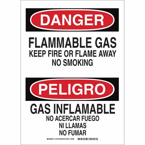 Brady, 124124, 14" x 10" B555 Danger Flammable Gas Keep Fire Or Flame Away... Sign