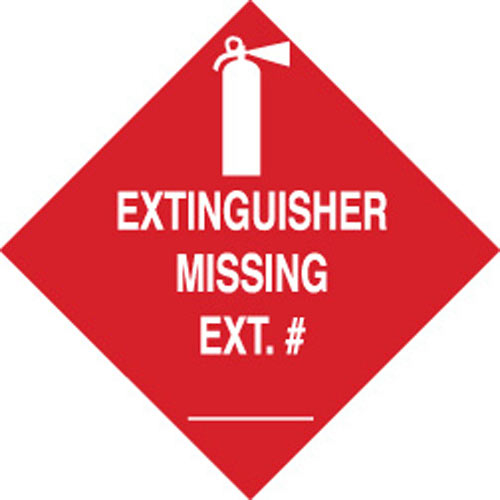 Brady, 90379, 3.5" x 3.5" Polyester Extinguisher Missing Ext # Sign, White on Red