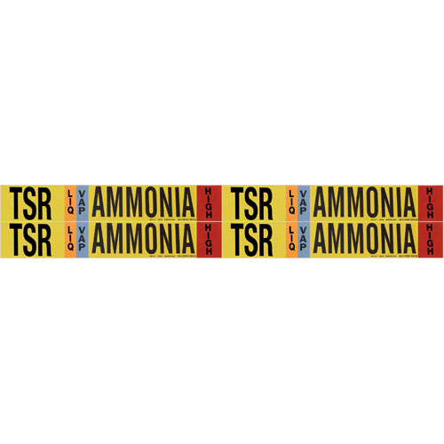 These IIAR-compliant pipe markers come with the traditional yellow background and are recommended for use in labeling ammonia piping and its contents.