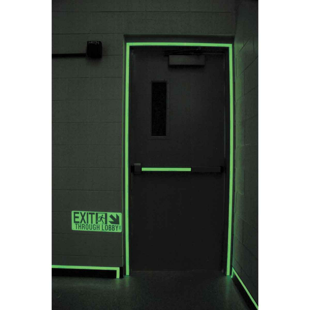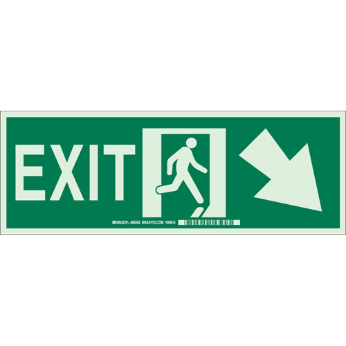 Brady 90592 5" x 14" Polyester BradyGlo Exit Sign, Green on Glow