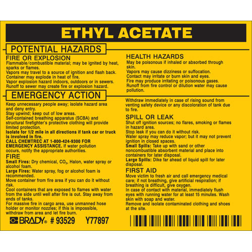 Black on yellow vinyl labels provide workers with all of the chemical information they'll need for hazardous materials they may encounter.