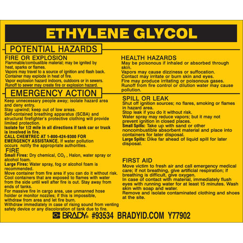 Save 3% each on Brady 93534 3.75" x 4.5" Vinyl Ethylene Glycol Label when you purchase 10 or more