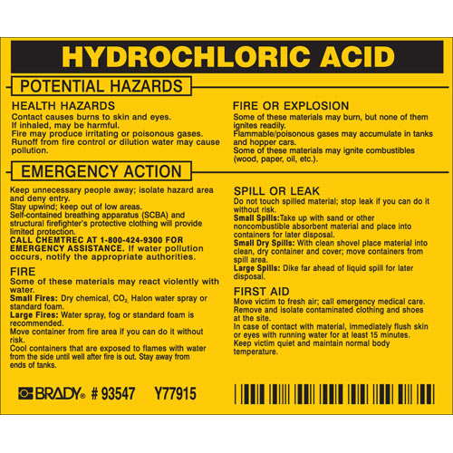 Save 7% each on Brady 93547 3.5" x 4.5" Vinyl Hydrochloric Acid Label when you purchase 50 or more
