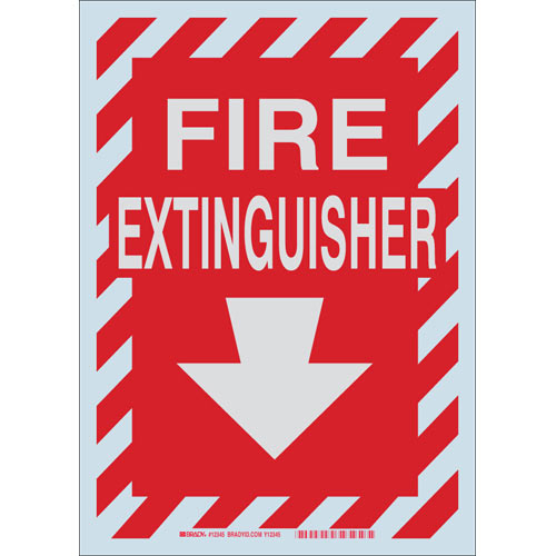 Brady 95146 Fire Extinguisher Sign, White on Red