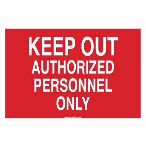 Brady, 95432, 10" x 14" B-401 Keep Out Authorized Personnel Only Sign, Red on White