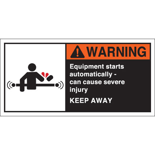 Brady, 96156, 2.5" x 5" B-302 Equipment Starts Automatically - Can Cause Severe Label