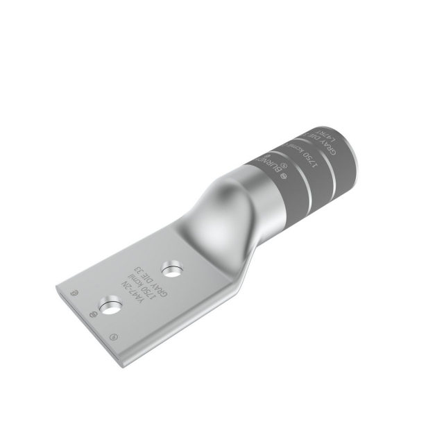 Burndy, YA472N, Copper Compression Lug, 2 Hole w/o Inspection Window,1/2" Stud, Long Barrel, Tin Plated.