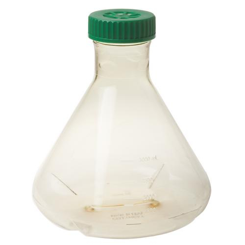 Fernbach Flask, 3L, Polycarbonate, Vent Cap, Baffled Bottom. For suspension culture. Over-sized opening/cap for ease of transfer and improved gas exchange. Sterile (gamma irradiated). 1/Bag, 4/CS.