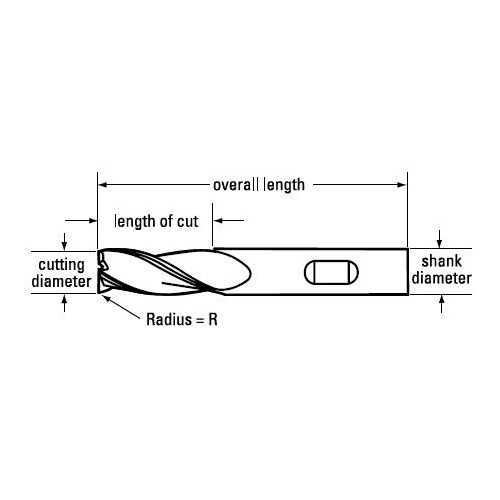 Cleveland, C40392, .75" x .75" x 2.25" PM-539R TiCN Powder Metal High-Helix Finishing End Mill, .06" Corner Radius
