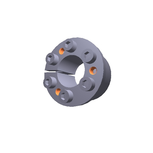 Series C192 installed in a roller chain sprocket. Note that unlike with many hex nut keyless bushings, the sprocket does not move axially during installation, greatly simplifying chain alignment. Series C192 is supplied Zinc plated from stock for added corrosion protection. Drop-in replacement for commonly used hex nut keyless bushings. Mounted component remains fixed axially during installation.