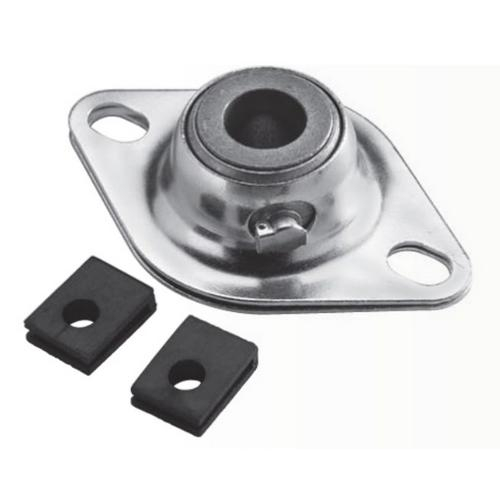 Two-Piece Housing has rust-proof plated finish. Spring-lid oil cap is at 45° and can be mounted vertically or horizontally. Porous flanged bronze bearing is press-fit in sturdy zinc die cast sphere with felt strip for lubrication. Includes 2 rubber grommets to reduce vibration & noise. Tolerates -5° to 220° F.