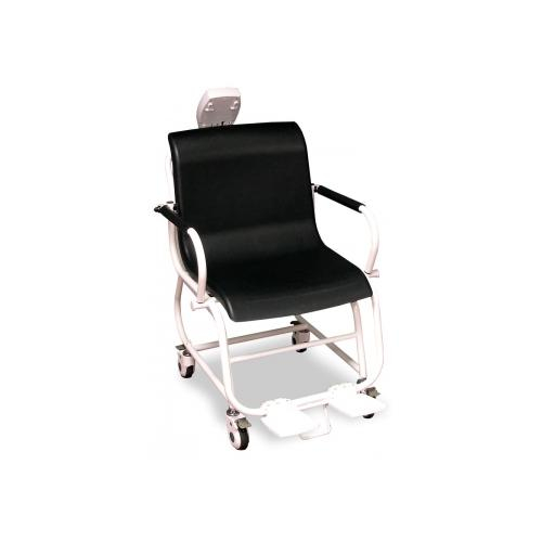 The strong steel frame provides a very durable chair scale that can weigh patients up to 550 pounds and display the weight on an easy to read LCD display. The maneuverable chair scale can be rolled to the patient, and easily and safely locked in place, to weigh the patient.