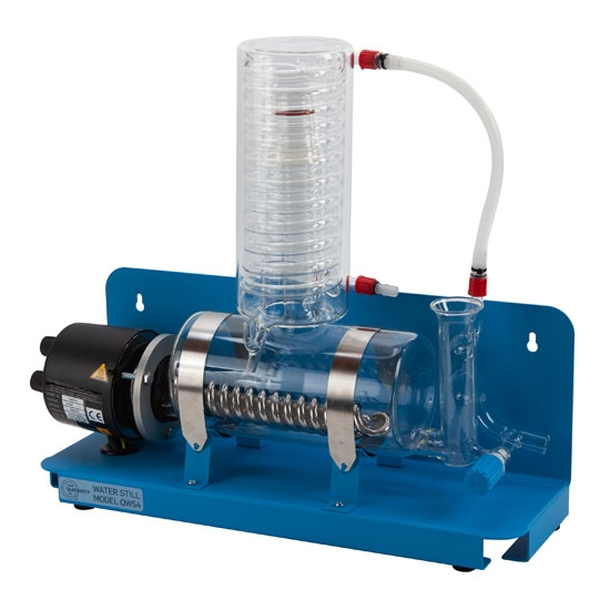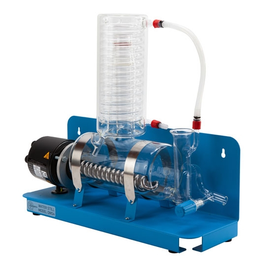 2.4 L / Hour Single Distillation Water Still. Manufactured in the United Kingdom, the QWS4 120V water still combines high performance and reliability with value for money. This new Quickfit water still features a high quality Pyrex glass boiler and condenser.