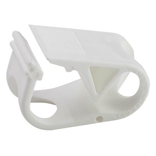 Molded of polypropylene suitable for ETO sterilization and is stocked in white. Accepts approximately 1/4" to 1/2" OD tubing.
