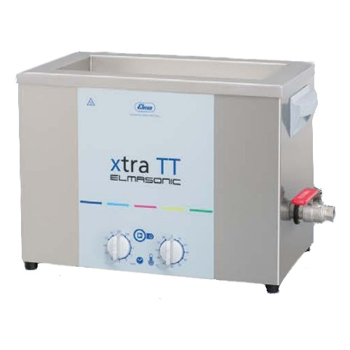 Elmasonic Xtra TT tabletop ultrasonic devices are designed for use in production environments, workshops and servicing. Features like the permanently integrated sweep function, the switchable dynamic function or the individually settable limit temperature with LED warning indicator make the cleaning of parts in day to day work much easier. All functions and cleaning parameters like time and heating preselection and ultrasonic frequency are arranged user-friendly on the control panel on the front of the device where users can set and monitor them at a glance. With their ultrasonic performance of 37 kHz, Elmasonic Xtra TT devices are rated for continuous heavy-duty operation. The tanks are made of special stainless steel, which makes them robust with a long service life.