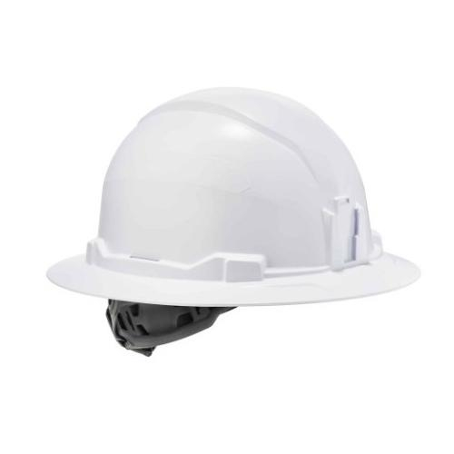 The Skullerz 8971 Class E Full Brim Hard Hat with 4-Point Suspension is heavy-duty yet lightweight and comfortable head protection built to protect the top of the head from falling objects or bumping into stationary objects. A padded, moisture-wicking and odor-resistant sweatband and top pad lines the sides, forehead and top interior and is removable for easy replacement. This full brim hard hat provides 360 degrees of protection from sun and rain.