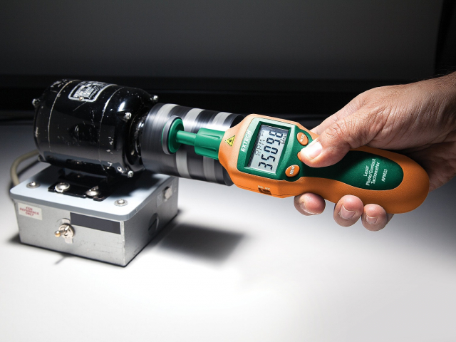 Quickly measure RPM, surface speed and length with one tool. Use the contact wheel for up-close readings or laser mode for safer, non-contact measurements up to 1.6ft (0.5m) away.